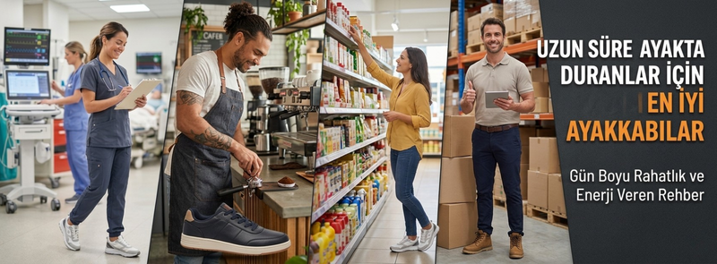 Bu rehberde uzun süre ayakta duranlar için ayakkabı seçiminin neden bu kadar kritik olduğunu, gün boyu ayakta kalanlar için en rahat ayakkabı özelliklerini, model kategorilerini, tabanlık seçimini, değiştirme sıklığını ve günlük alışkanlıkları ayrıntılı biçimde ele aldık.